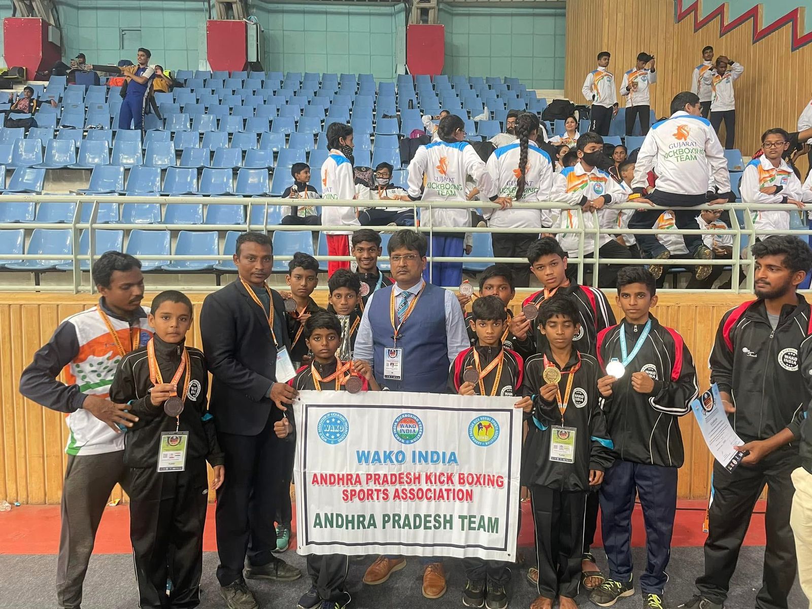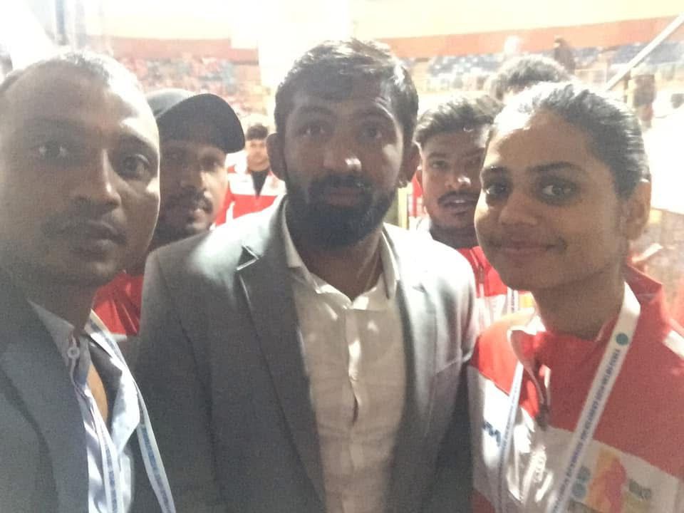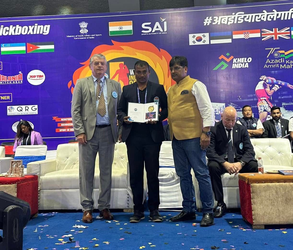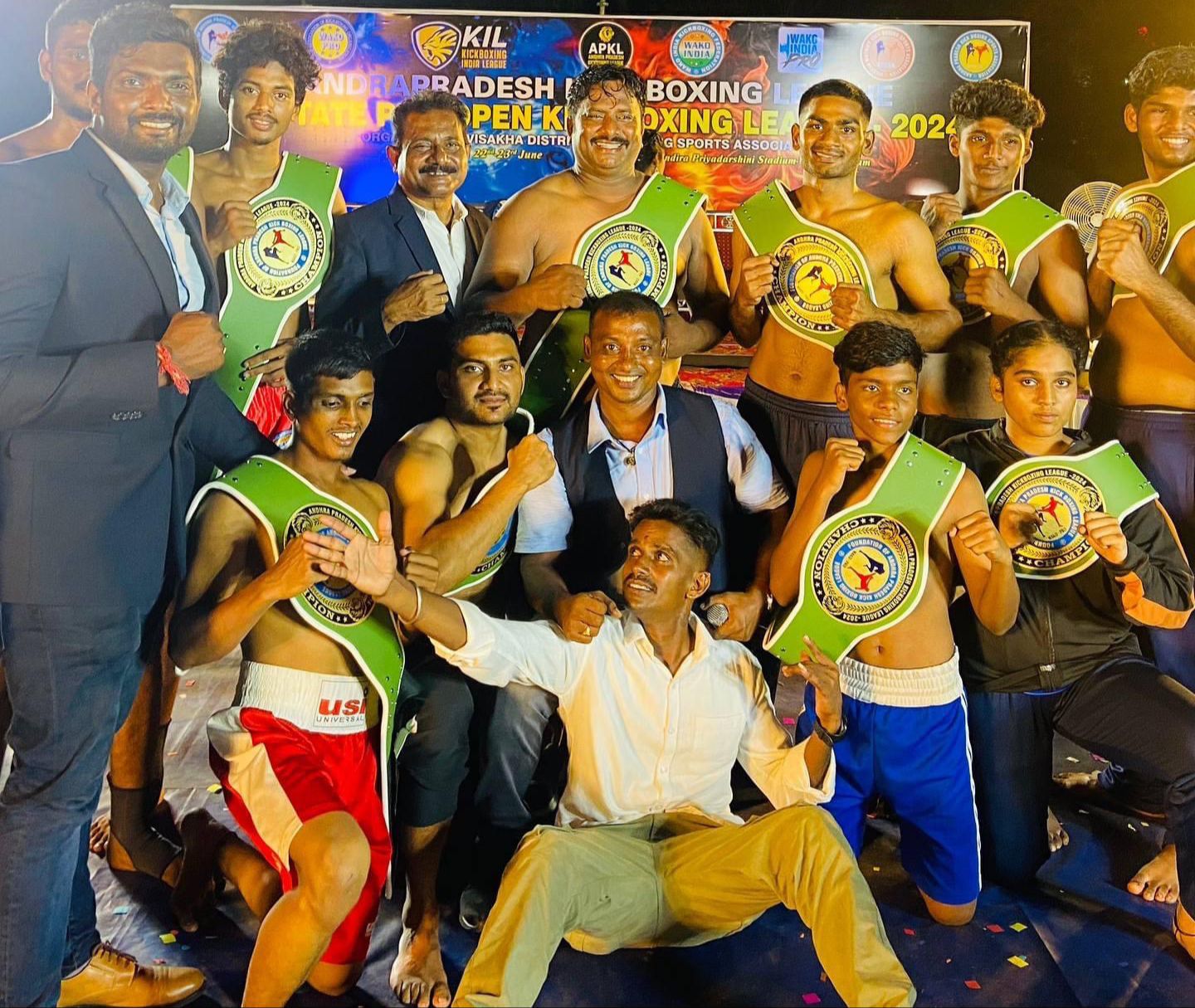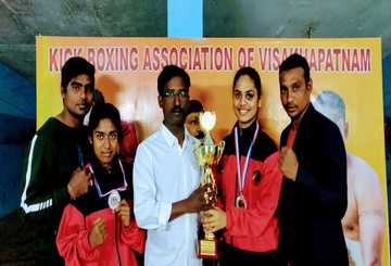 Tenki Durga, President and Chairman of the Andhra Pradesh Kickboxing League, and Prudhvila, Executive